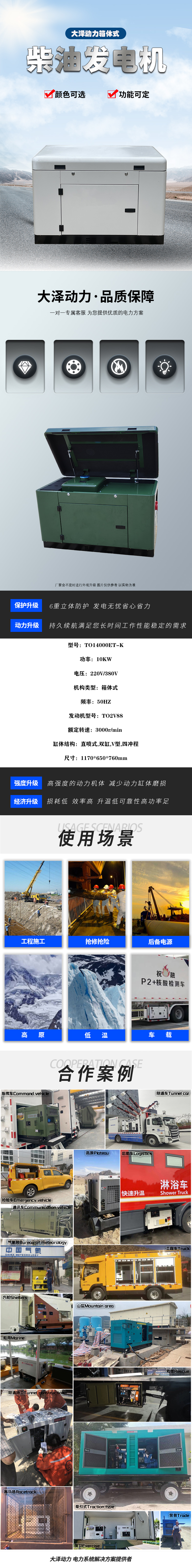 大澤動(dòng)力10KW靜音柴油發(fā)電機(jī)TO14000ET-K