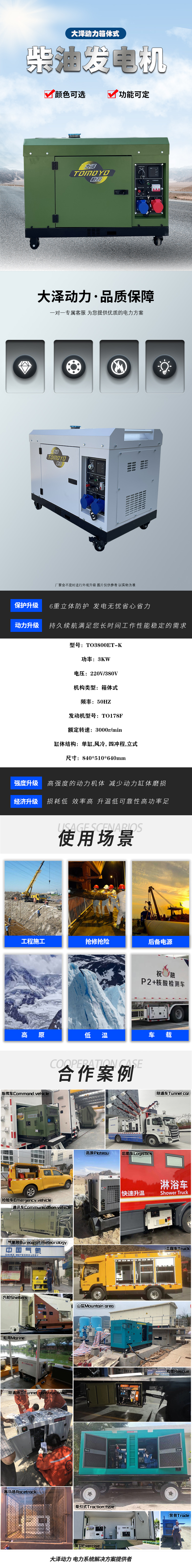 大澤動力3KW靜音柴油發(fā)電機TO3800ET-K