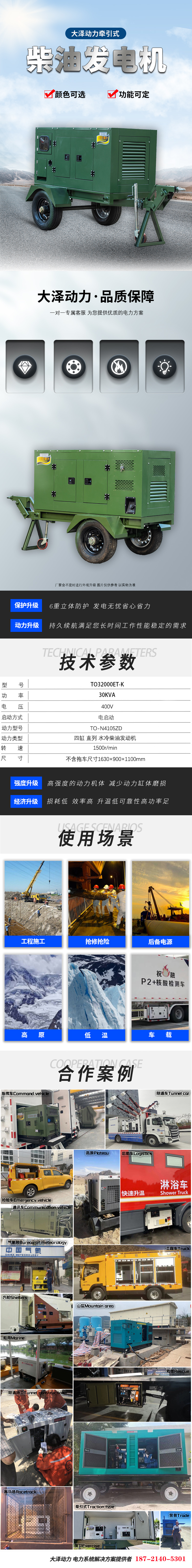 大澤動力30KW移動拖車式柴油發(fā)電機
